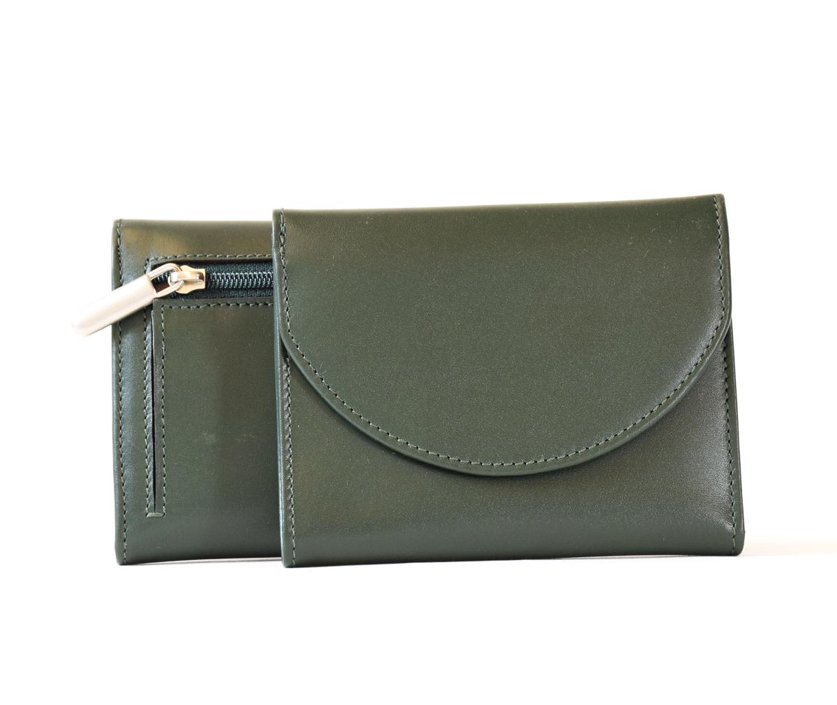 Wallet 4 slits for cards + 2 extra, opening at the top for bills. Pocket at the back with zipper for coins